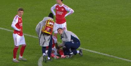 第11分钟,马杜埃凯出现受伤状况,接受队医处理
